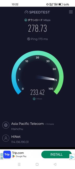直接測到278Mbps,另外在其他單軌站測試幾乎都有80-200Mbps左右的速度