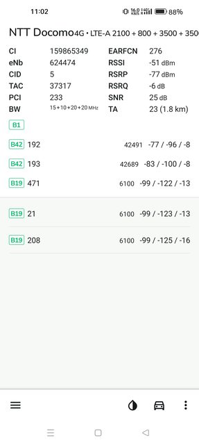 在沖繩來客夢更是測到將近300Mbps的高速(5CA)