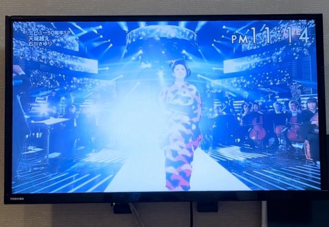 晚上就窩在旅館,吃完晚餐飛奔回房間開電視看紅白。