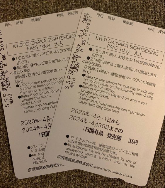 標題[讓售] 京阪電車-京都.大阪觀光乘車券一日券*2