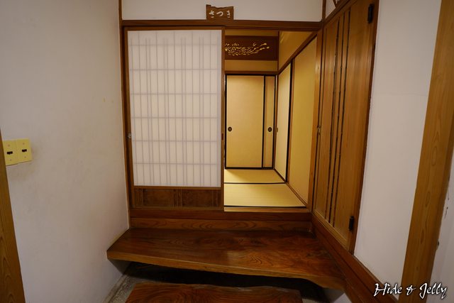 木頭地板,女將很辛苦的提著我們的行李不讓其在地板滾動,加上進入房間前的一段走道