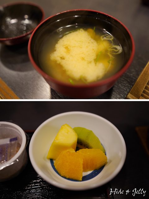 簡單卻口味溫潤的白味噌湯(上圖),還有小水果盤(下圖)。