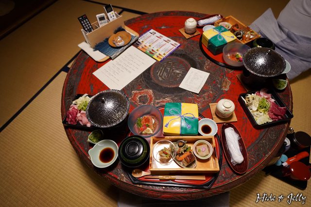玉井館的六間客室,晚餐皆在房內享用,我們房內的古老圓桌上已經放上了數道料理,中
