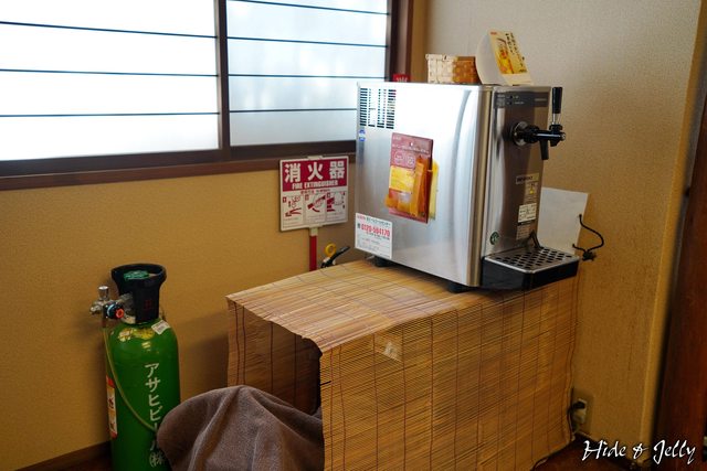 我們先被招待在大廳休息一下,玉井館的迎賓飲料卻很現代,是一台生啤機,提供島根地