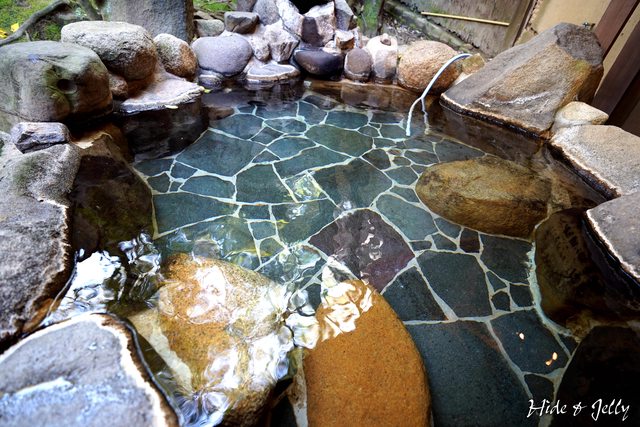 肌之湯,泡完皮膚都有滑溜滑溜的感覺!庭園溫泉池的溫度並不算太高,大概40度左右,