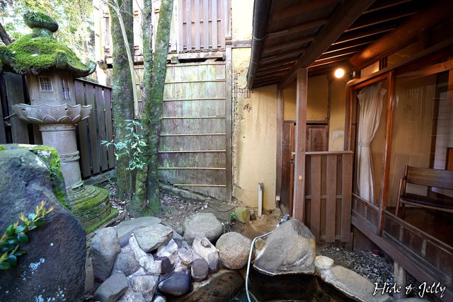 溫泉池旁還有石燈籠造景,石燈籠上的青苔相當茂密,加上一旁建築物的些微斑駁,就算