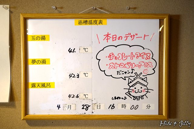 門口的板子上會寫上目前的水溫,「玉の湯」為往地下挖入的室內浴池,「夢の湯」則為