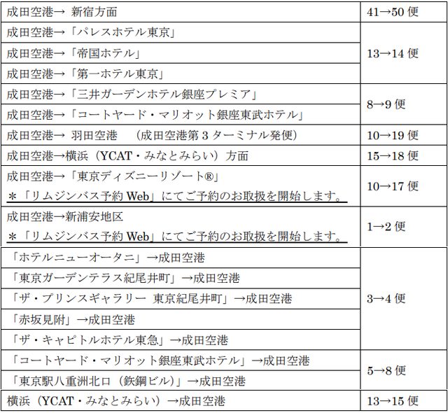 成田/羽田機場的利木津巴士部分路線增班、復駛