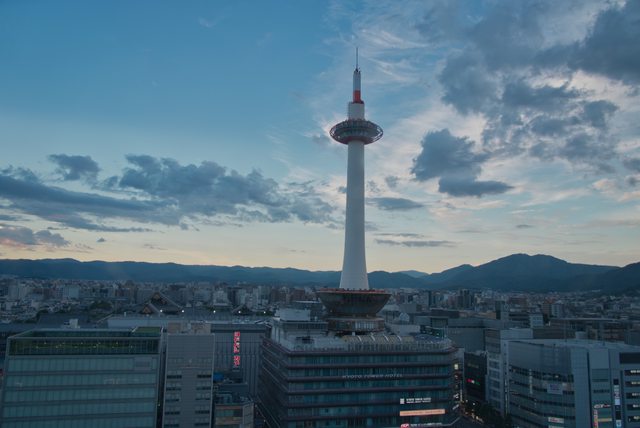 晚霞下的京都塔