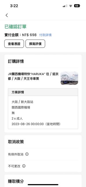 標題[讓售] JR HARUKA大阪至關西機場車票(單程)