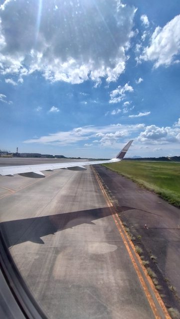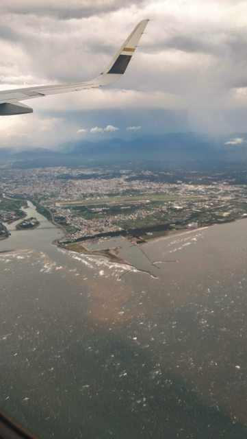 因為颱風接近,降落過程有比較晃,感謝星宇教官讓我一家多熊全體安全回來