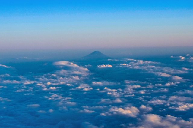 在上越上空看到200公里遠的富士山