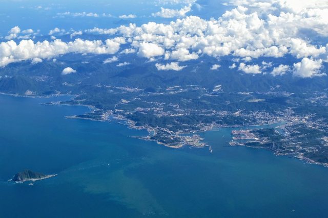 從鹿兒島上空進入日本陸地 首先看到櫻島火山