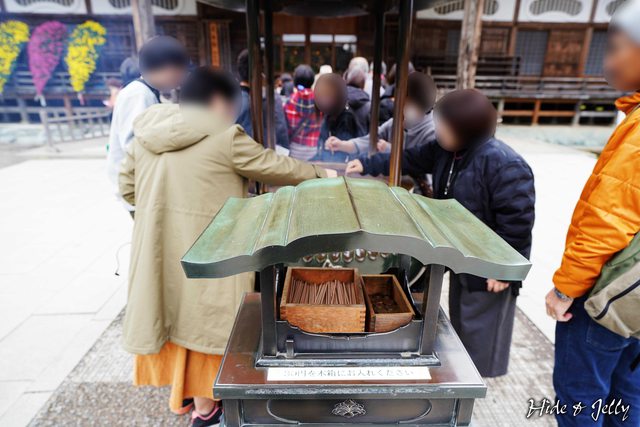 日本寺廟的參拜方式,捻香放入香爐中即可,別忘了要放30円到一旁盒內唷。