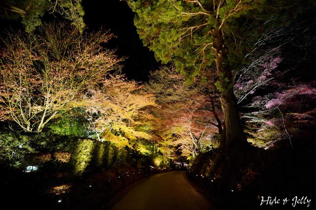 整條參道的感覺,旁邊的灌木叢也有打著燈光,很美,很美!