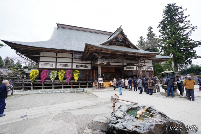賣店對面就是中尊寺的本堂,週日碰上楓葉季,本堂前排隊參拜的民眾相當多。本堂前方