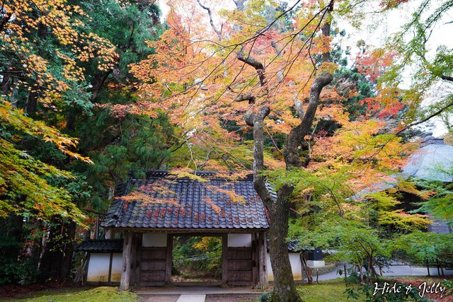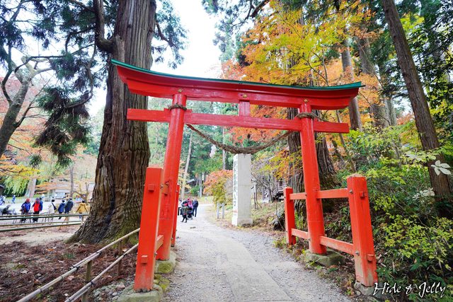 順著路走可以來到中尊寺最深處的白山神社,被楓葉圍繞的木門也太美了這畫面。