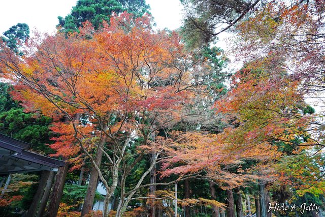 抬頭看看「峯藥師堂」到金色堂的這段參道,都是高度較高的楓葉,楓紅的狀態蠻不錯的