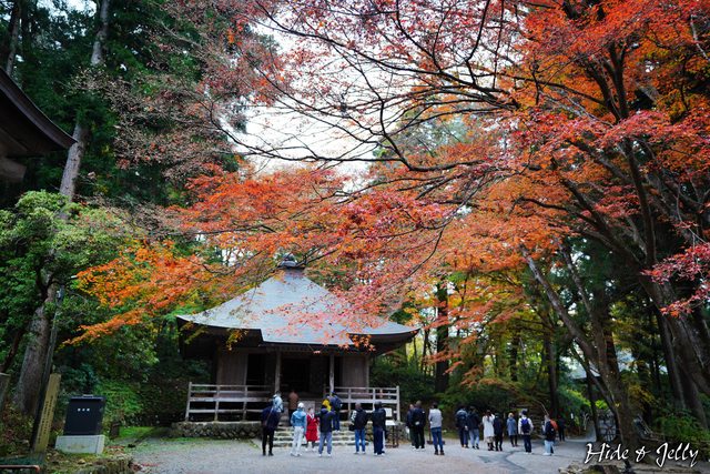 再往上一點,來到「觀音堂」,前方的楓葉已經轉為漂亮的橘紅色,搭配靜謚的佛堂,有