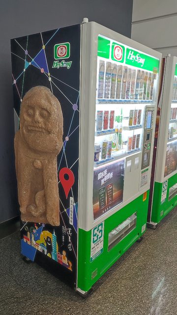 然後在一台很像金凱瑞摩天大聖的金門風獅(風濕?)爺的飲料機上方...