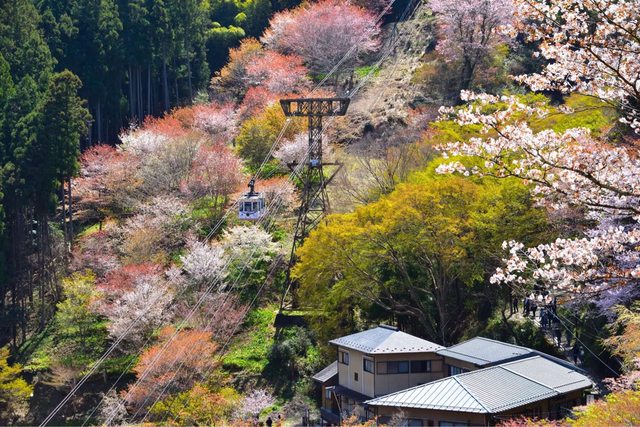 從千本口站乘坐纜車只要3分鐘就能登上山。