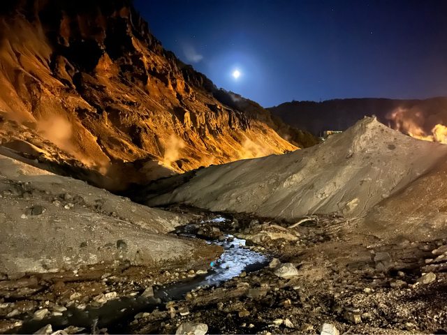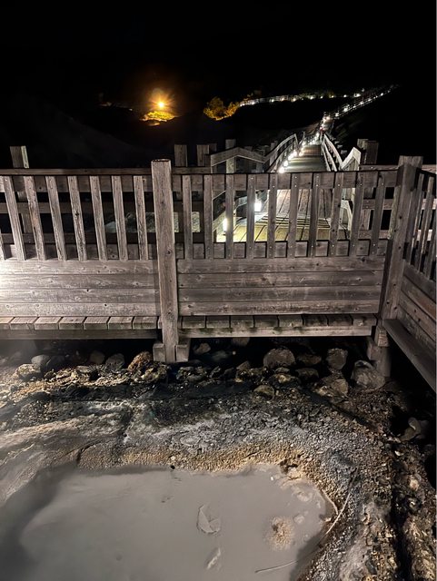 沿途的步道-鬼火之路有點燈,到鐵泉池繞一圈回來。火山地形,加上煙霧彌漫充滿硫磺