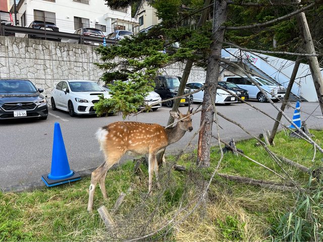 在飯店附近的停車場,看到野生的蝦夷鹿。