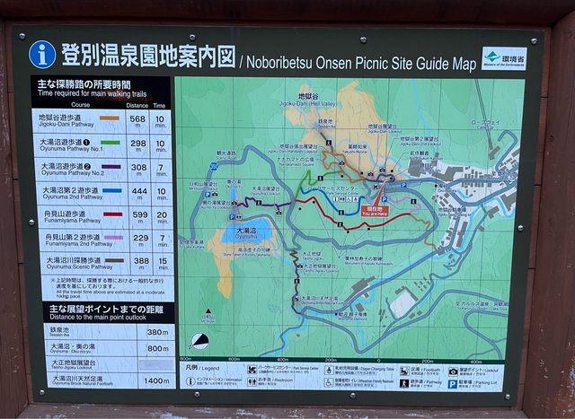 從地獄谷第二展望台出發,距離大湯沼約800公尺。