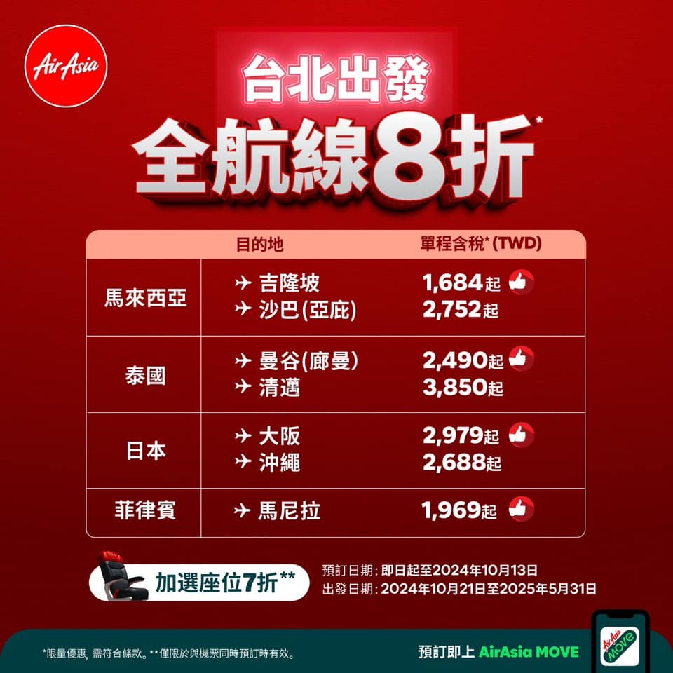 亞洲航空推出全航線8折促銷,雖然文宣上寫到2025年5月31日,
