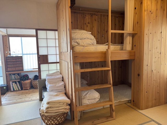 房間部分總共有四間臥室,分別是小雙人床、四人上下舖、和式房、雙床房