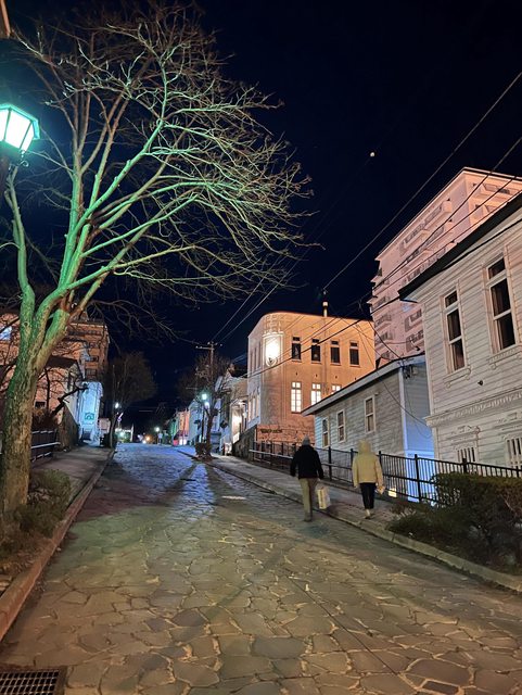 這是晚上從坡道下隨手拍的照片,中間那一棟白色房子就是民宿,一樓是咖啡廳,從民宿裡面