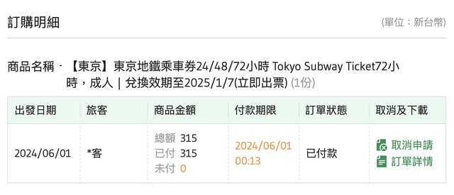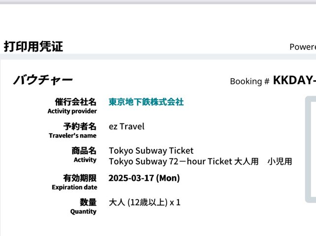 標題[讓售] 東京地鐵72小時 1張