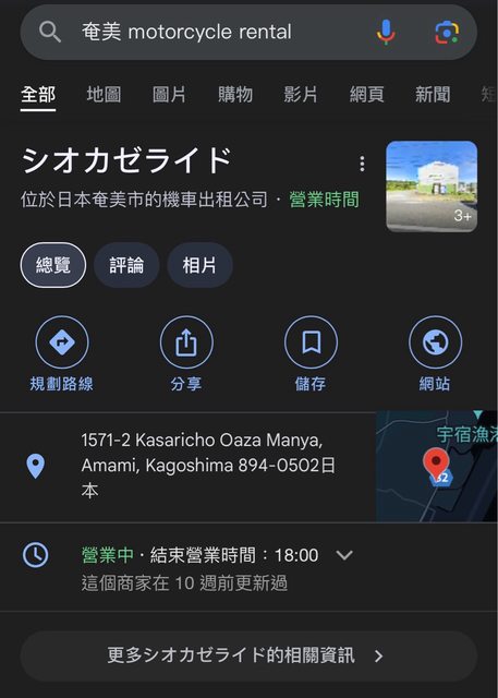租」,資料跟當年的一樣。但是不知道今天為什麼智力增加,我改搜尋 奄美 motorcycle