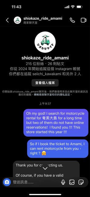 我立刻興奮的私訊給店家問可否線上預約,順便建議他可以把Google關鍵字多 「奄美 機