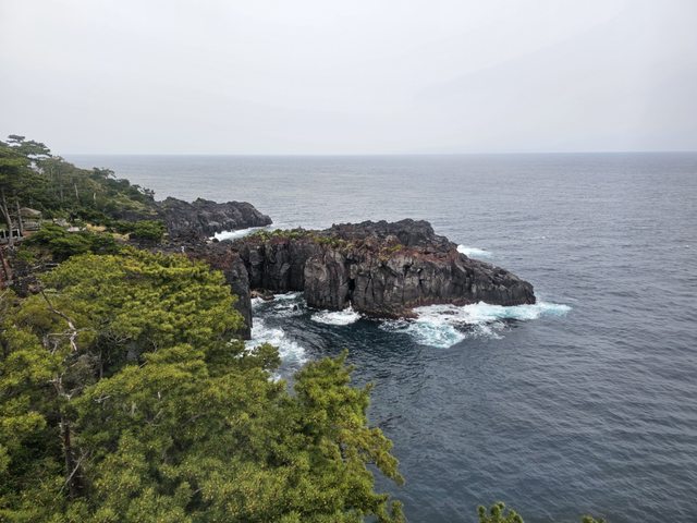 離開大室山後到了今天最後的景點-城崎海岸,很可惜的是到這邊依然還在下雨,只好在
