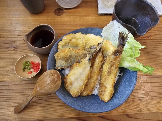 飯類能選,點了一份炸當地魚的蓋飯,從前菜、主食到甜點飲料都十分美味。