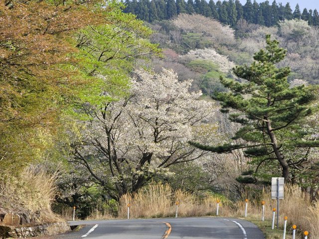 條伊豆Skyline上不但大部分的地方都可以看到遠處的富士山,路旁和山上也種有許多櫻
