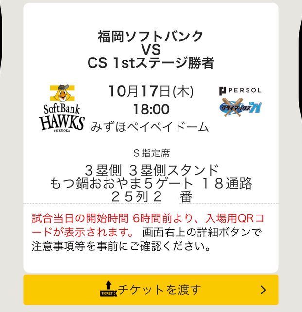 10/17 日職洋聯季後賽軟銀對火腿game 2門票一張