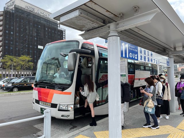 搭09:50函館機場線巴士到機場(10:10)。