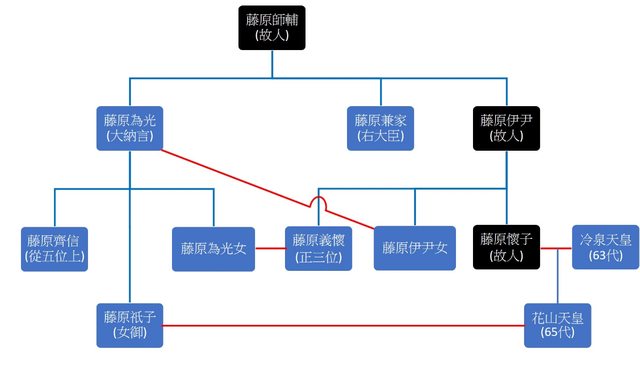 圖可看出,為光是花山帝岳父,娶了花山帝外公伊尹的女兒、義懷的妹妹作妻子,然後又