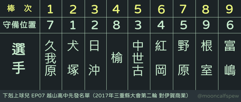 → mooncalfspew: 弱校其實大多是王牌一人從頭用到尾,也會連續先發 05/07 21:04