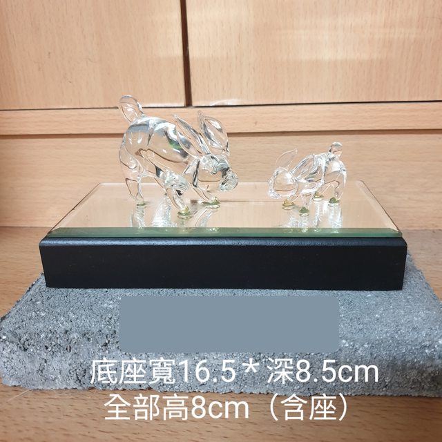 4.擺件(如圖無盒,有點像兔子,也有點像豬,大約6成新,玻璃底座邊緣有老化現象)
