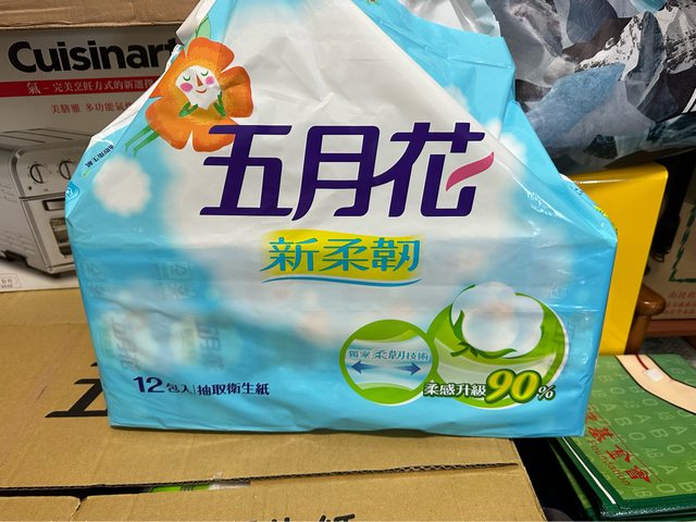 欲換物品:五月花新柔韌抽取式衛生紙或是舒潔衛生紙一串(12包)