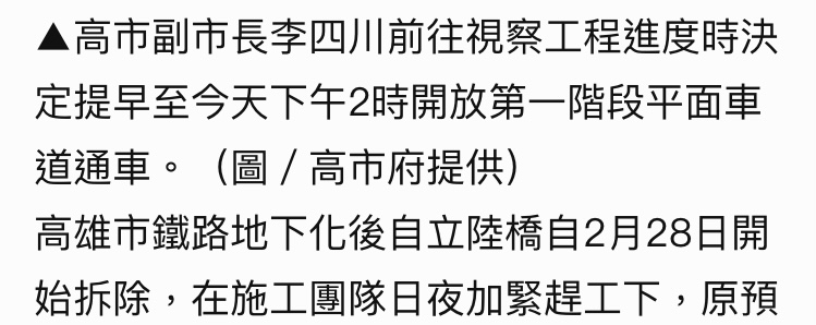 → momotaloson : 衡量所有高雄市民的福祉,所以還是只能夜間施工 12/13 10:40