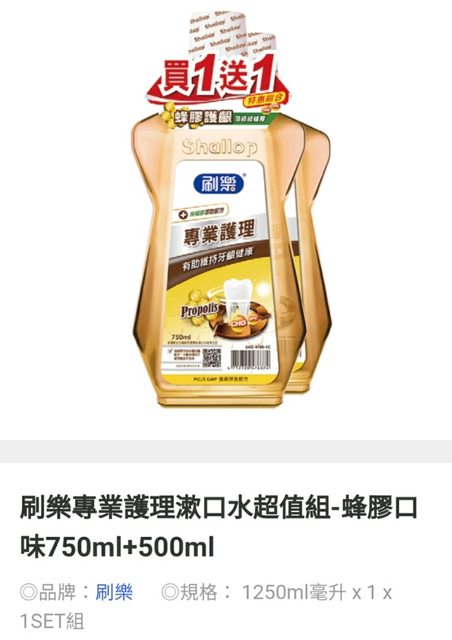 750ml十500ml刷樂專業護理漱口水蜂膠護齦 (家樂福量販店有賣組合的)