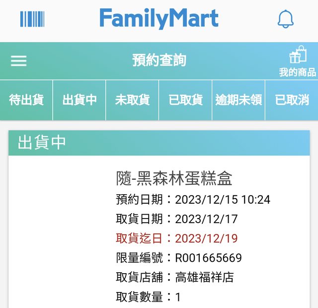贈送地點:高雄福祥店-全家