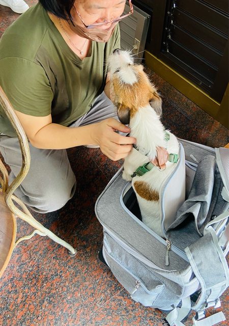 贈出原因:狗狗會像圖片那樣趴在背包上,背包不夠硬挺會有點軟掉