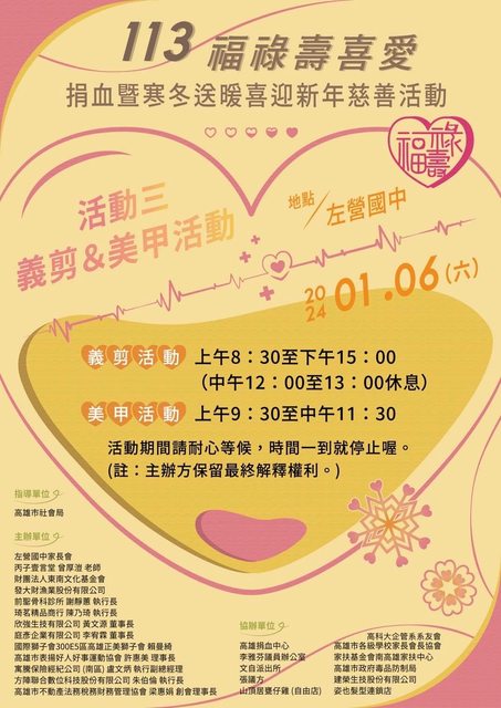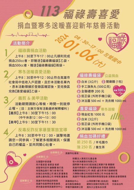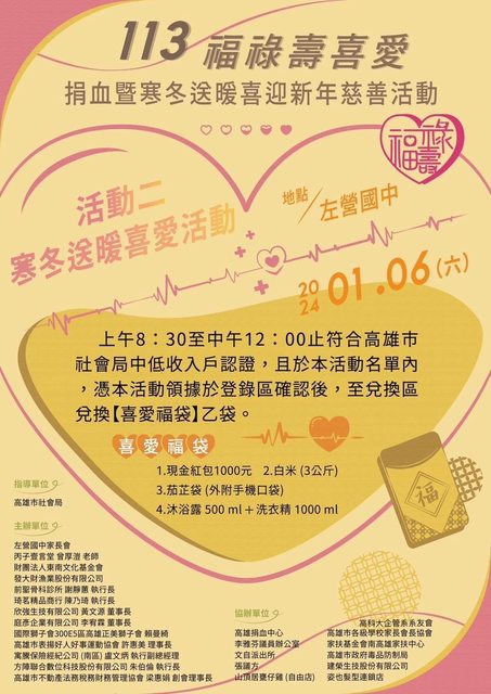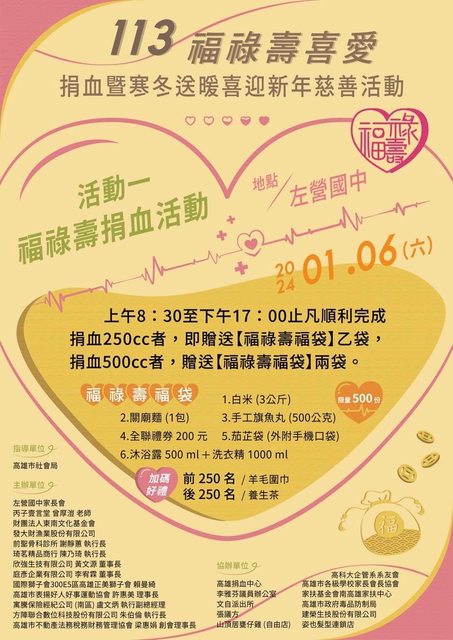 : 在左營國中有福祿壽捐血活動兼寒冬送暖慈善活動