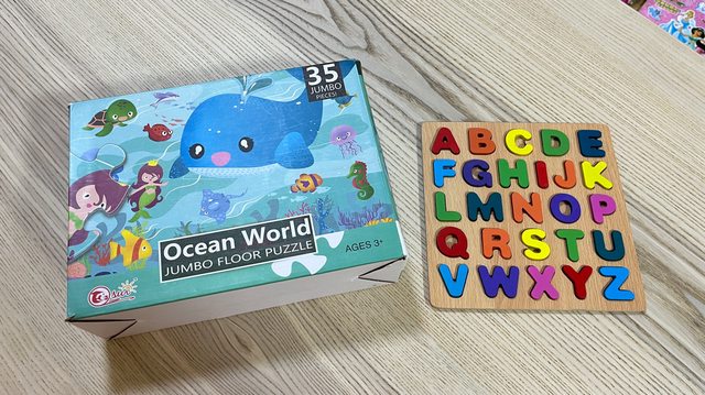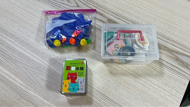 物品名稱:數數小貓、米奇配對桌遊、天秤桌遊、35片大拼圖、字母配對、扮家家酒配件