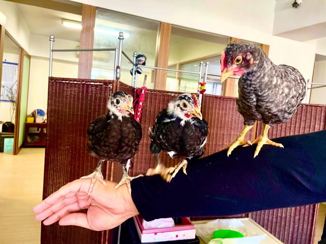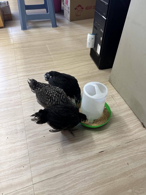 特徵:還是未長大的雞,公的毛色灰色漸層有明顯的雞冠,母的毛色黑色